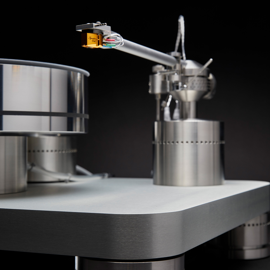 Today, audiophiles have the opportunity to benefit from this supremely capable design. Purchasing a Transcendence with a large base enables one to use a tonearm of any length and offers the possibility of placing it at a desired location rather than a fixed mount, provided that the location is the correct distance away from the platter spindle. Additionally, upgrades are stress-free, since components can be swapped without the need for disassembly.