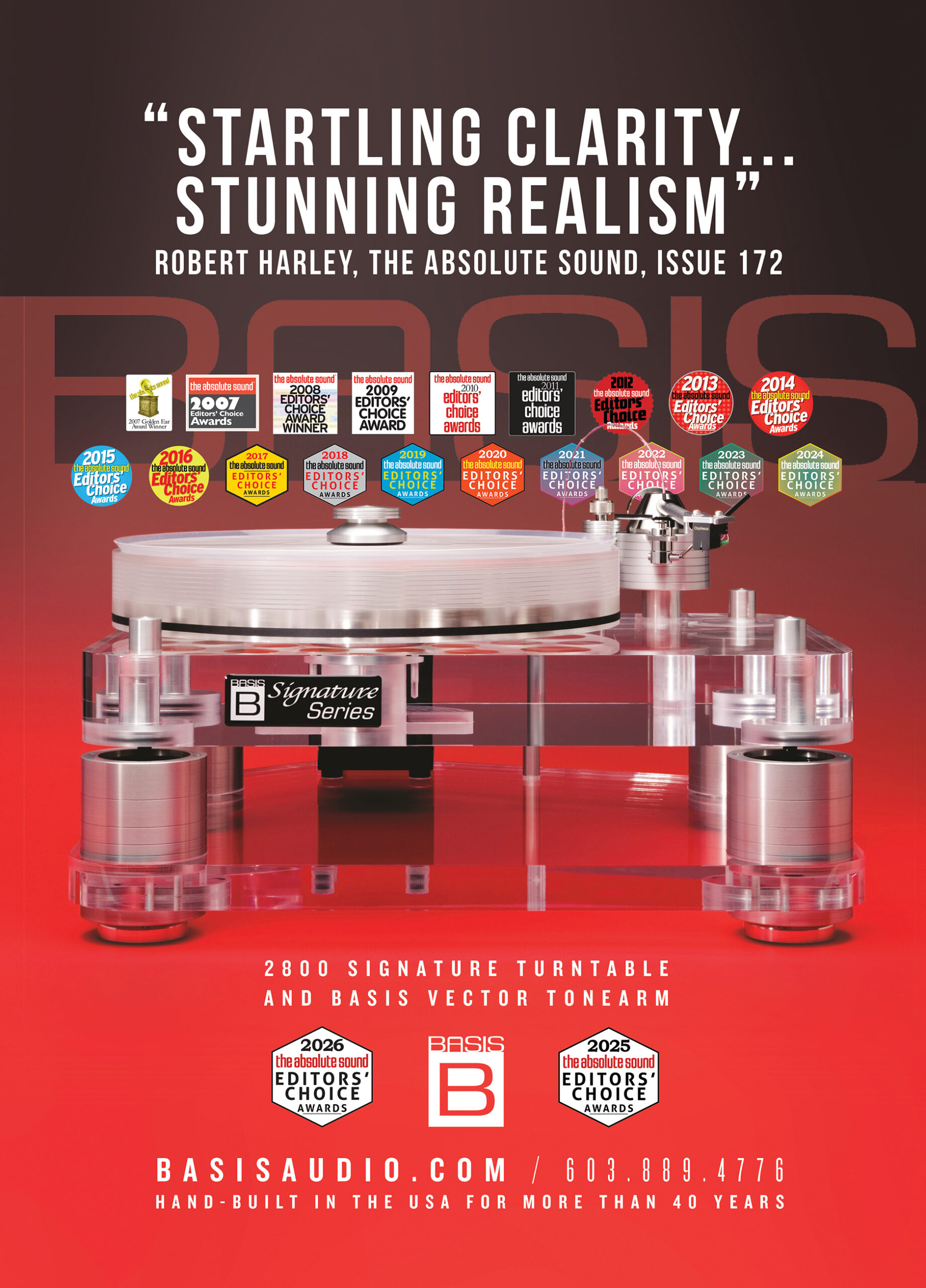 Les Turoczi of 6moons.com wrote “The Basis 2800/Vector 4 represents unequalled achievement”. “The Vector 4 never mistracks and is a joy to operate……”