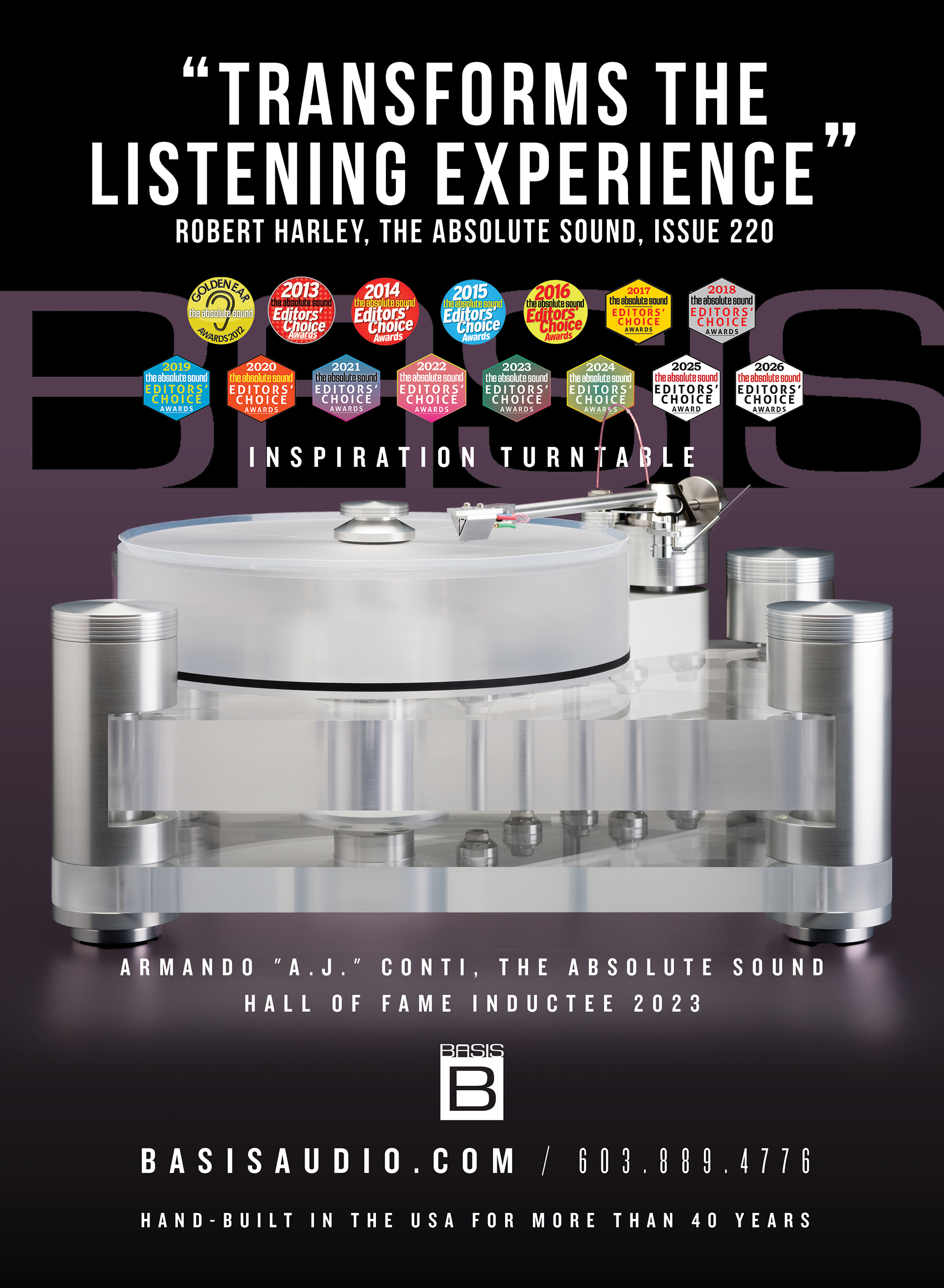 A.J. Conti’s mission for the Basis Inspiration was clear from the beginning: To design a turntable system that performs as closely as possible to the unequaled Basis Work of Art at a more accessible cost.